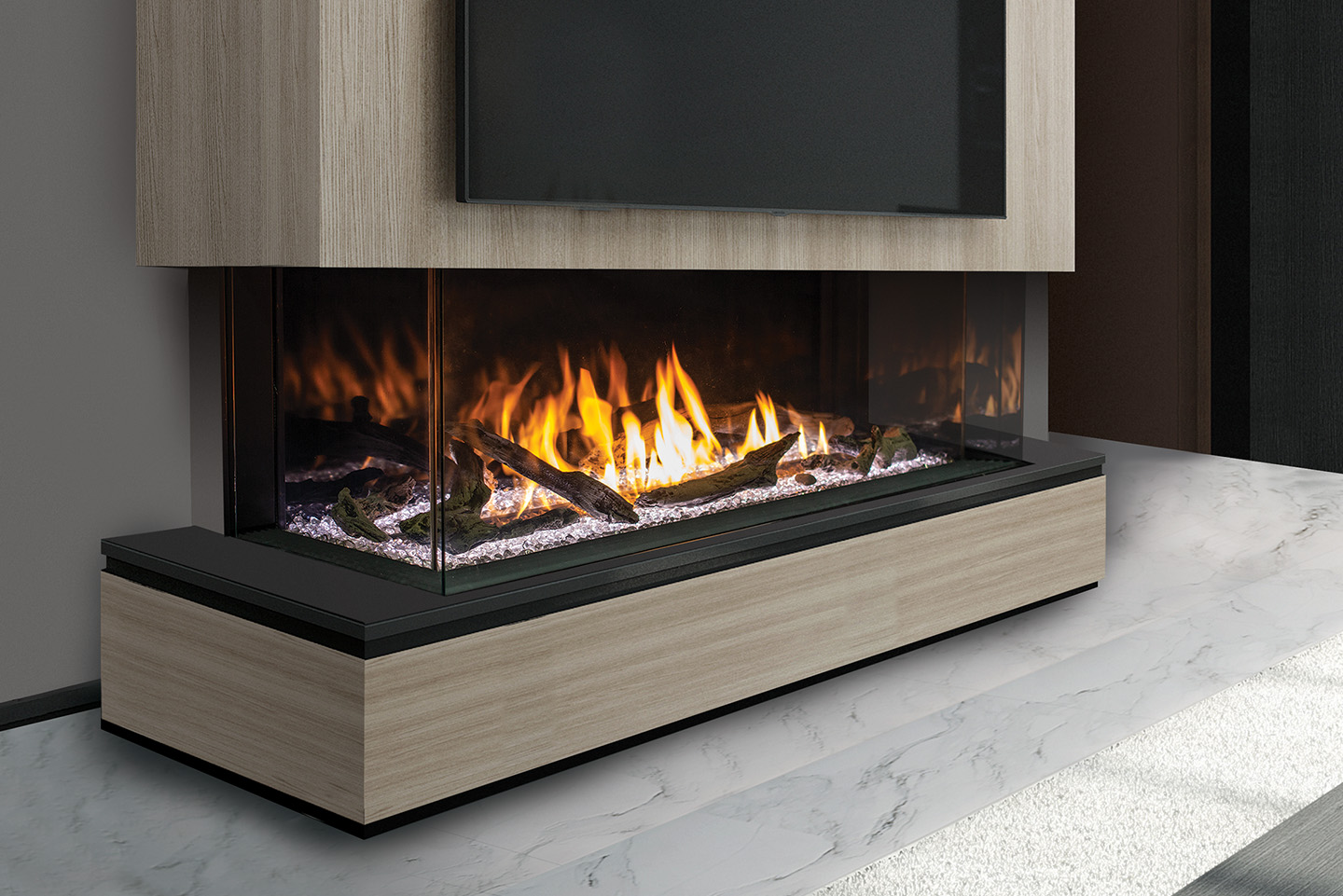 – Vitrage panoramique à 3 côtés pour une vue spectaculaire des flammes